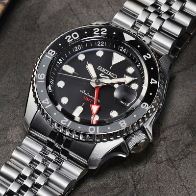 El Seiko SSK001K1 es un reloj automático de la línea Seiko 5 Sports que destaca por incluir una complicación GMT a un precio accesible. Inspirado en el diseño icónico de la serie SKX, es ideal para viajeros que necesitan seguir dos zonas horarias simultáneamente