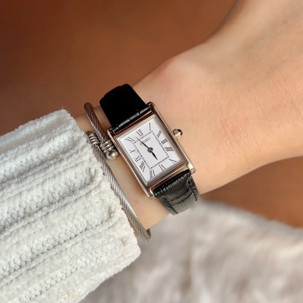 El Seiko SWR107P1 es un reloj analógico para mujer de la colección Seiko Classic, caracterizado por su diseño rectangular minimalista que recuerda al estilo “Tank”. Es una opción popular para quienes buscan una estética sofisticada y atemporal a un precio accesible