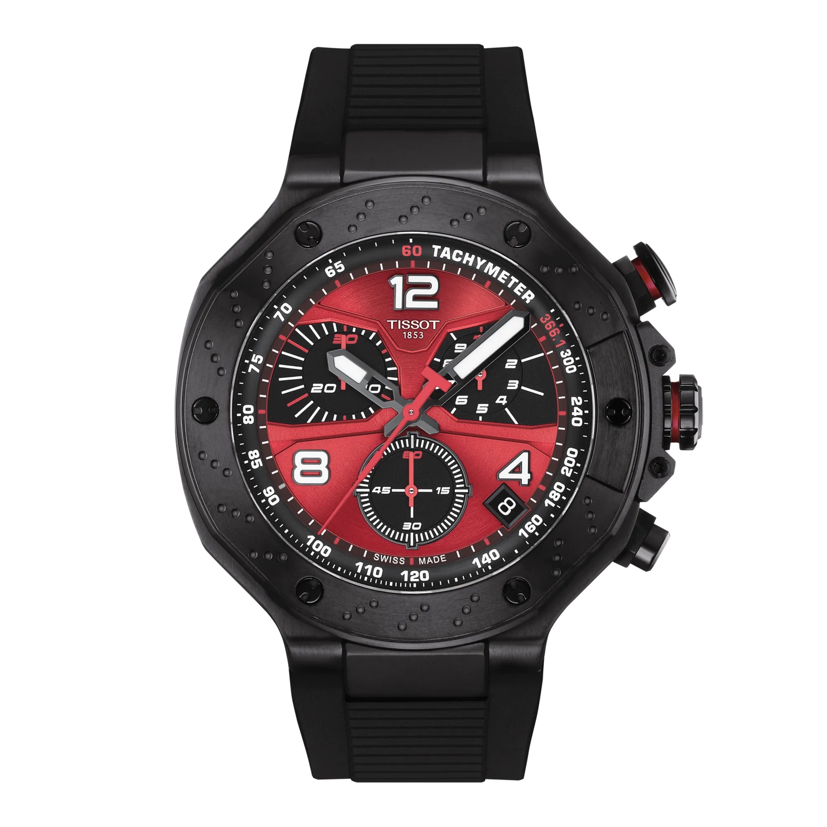 Para celebrar más de dos décadas de colaboración con MotoGP™, la emblemática colección T-Race, inspirada en las motos de carreras, se amplía en 2026 con nuevas referencias, entre las que se incluye este exclusivo modelo T-Race Quartz Chronograph. Al igual que el motociclismo, Tissot es el lugar donde la pasión se une a la innovación y el estilo. Libertad, carretera abierta y dedicación: el T-Race es el reloj preferido de todo motorista caballeroso. Tissot se inspiró en el espíritu de este deporte para crear relojes que reflejan la naturaleza dinámica de las motos y la emoción del deporte. Con su disco de freno y su pinza en el bisel, los pulsadores inspirados en el manillar y las aletas de refrigeración del motor representadas en el lateral de la caja, este reloj fue concebido como un auténtico homenaje a esta disciplina. Resistente al agua, con un movimiento cronógrafo de cuarzo y agujas distintivas para las horas y los minutos recubiertas de SuperlumiNova, este reloj será el compañero ideal de los aficionados a las motos de carreras. Limitado a 8000 piezas, se entrega en la emblemática caja con forma de casco.