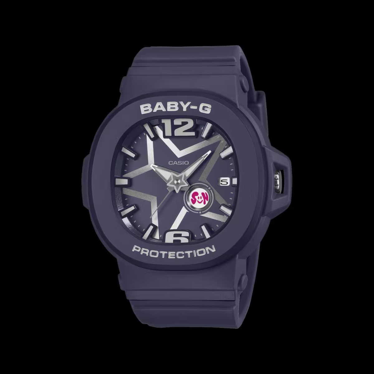 Motivos de estrellas y colores metálicos brillantes iluminan la esfera de este reloj. El aspecto pop, inspirado en el espacio, combina a la perfección con la moda futurista al estilo Y3K. La esfera analógica de tres agujas facilita la lectura de la hora de un vistazo, mientras que la función de fecha y día resulta muy útil, combinando estilo y practicidad. La esfera diurna ofrece siete patrones exclusivos, lo que añade un toque lúdico de BABY-G que cambia la expresión del reloj cada día.