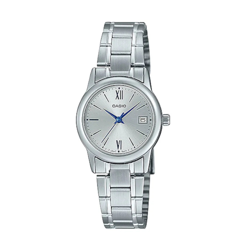 Reloj elegante y versátil de la línea Casio LTP-V002, ideal para complementar tu estilo tanto en el trabajo como en momentos informales. Cuenta con visualización de fecha a las 3 en punto, números romanos e índices de barras de fácil lectura, y resistencia al agua para uso diario, lo que lo hace práctico incluso bajo la lluvia o al lavarse las manos.