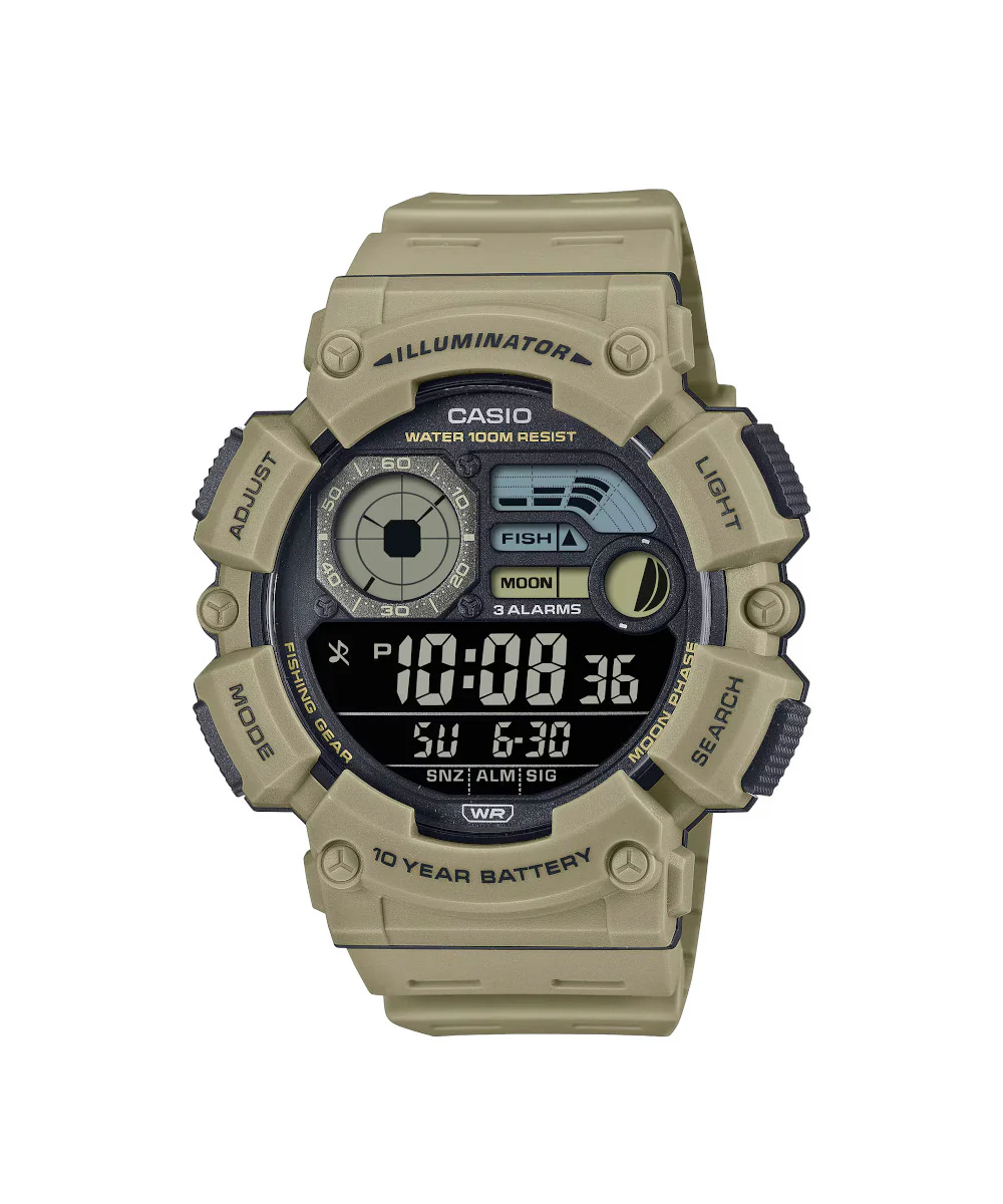 Satisfaga sus necesidades de estilo y practicidad gracias a una fórmula audaz en un reloj digital multifuncional con un diseño de tamaño generoso fácil de leer. Estos relojes están siempre listos, gracias a una batería de 10 años, resistencia al agua de hasta 100 metros, luz LED y pantalla de hora dual. Los indicadores de fase lunar y nivel de pesca le ofrecen justo lo que necesita cuando está fuera del agua.