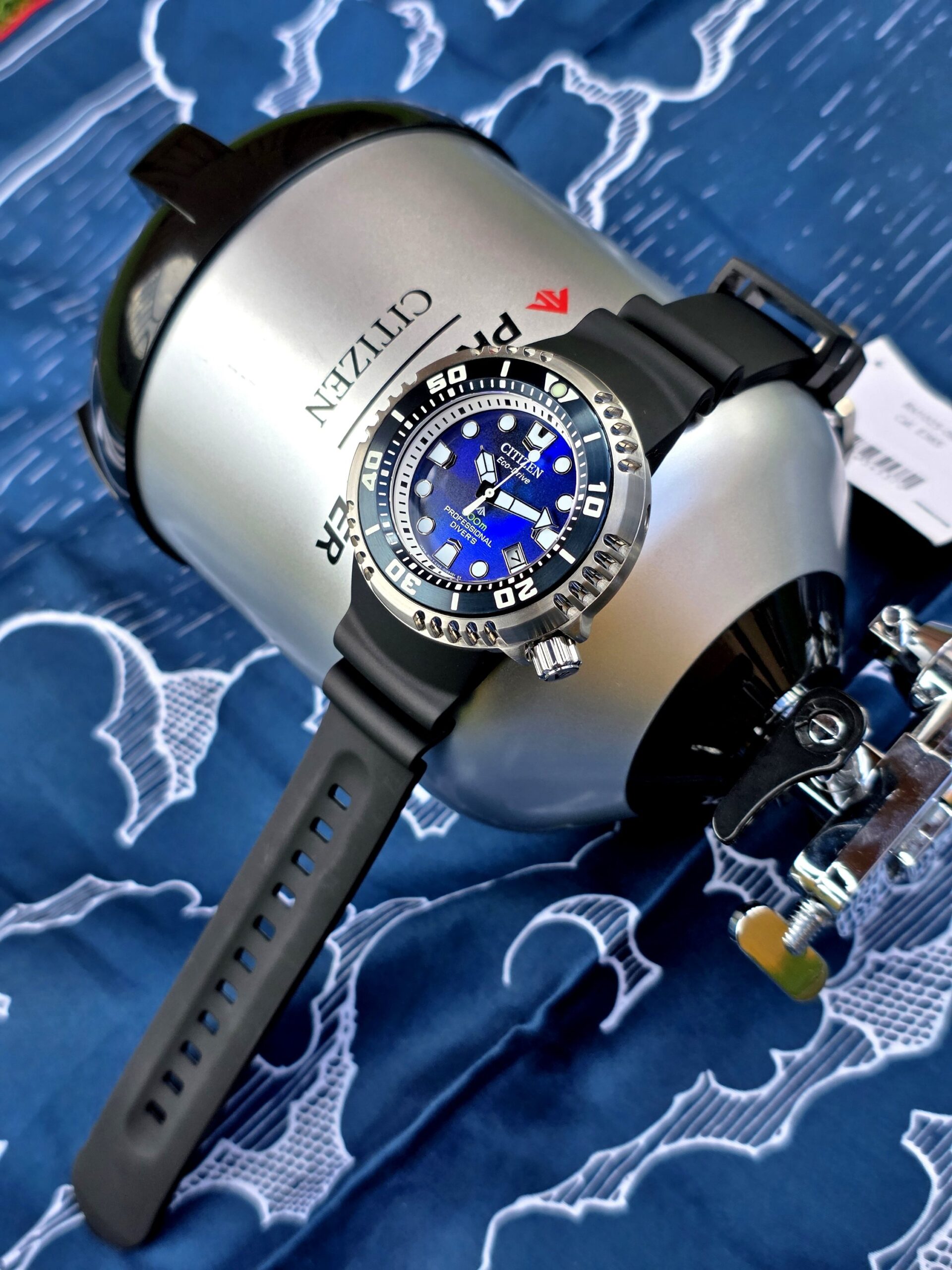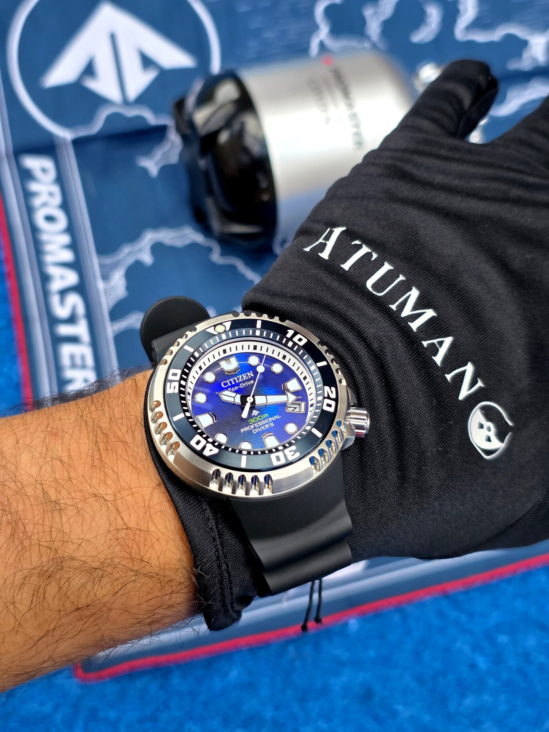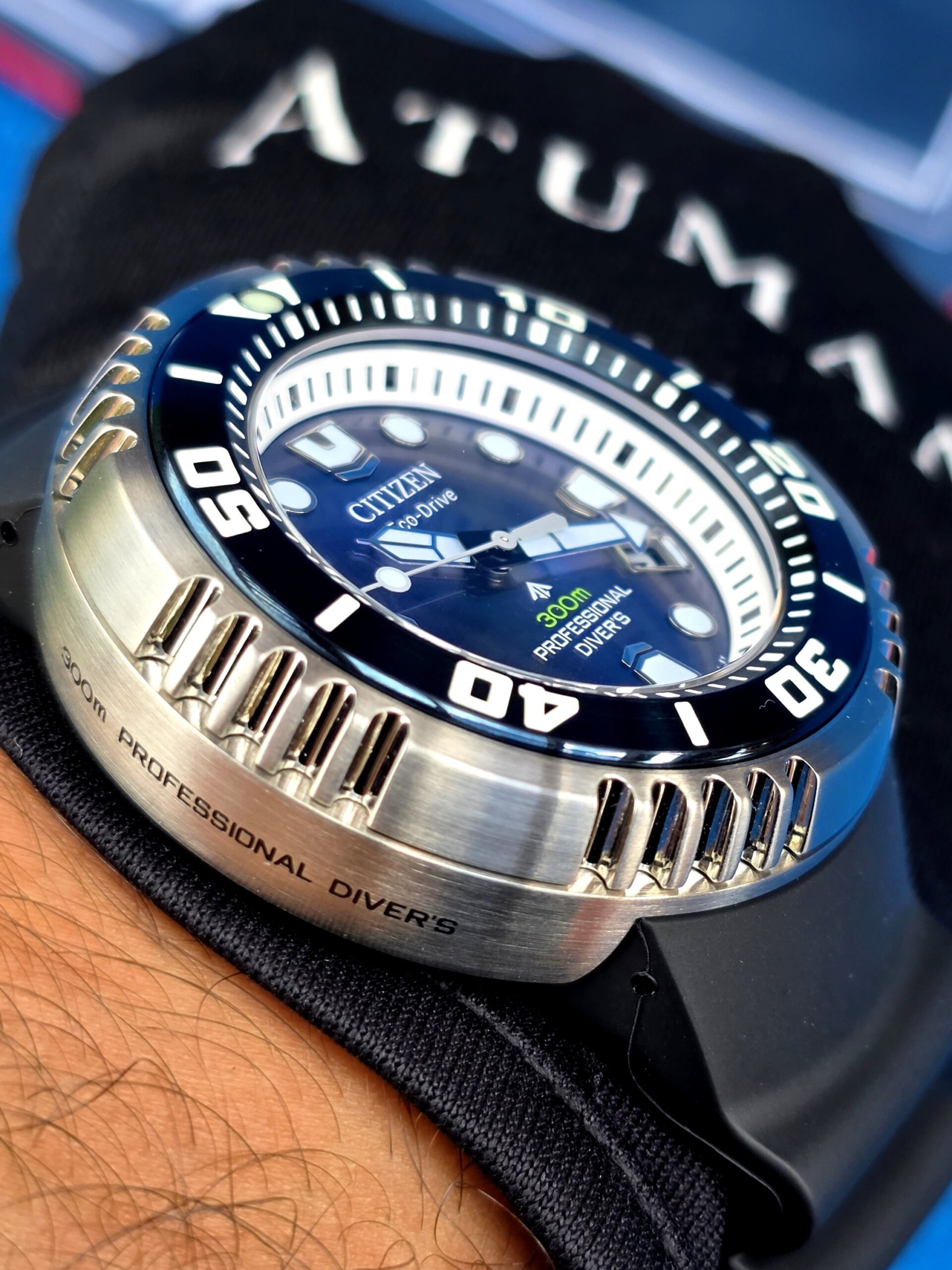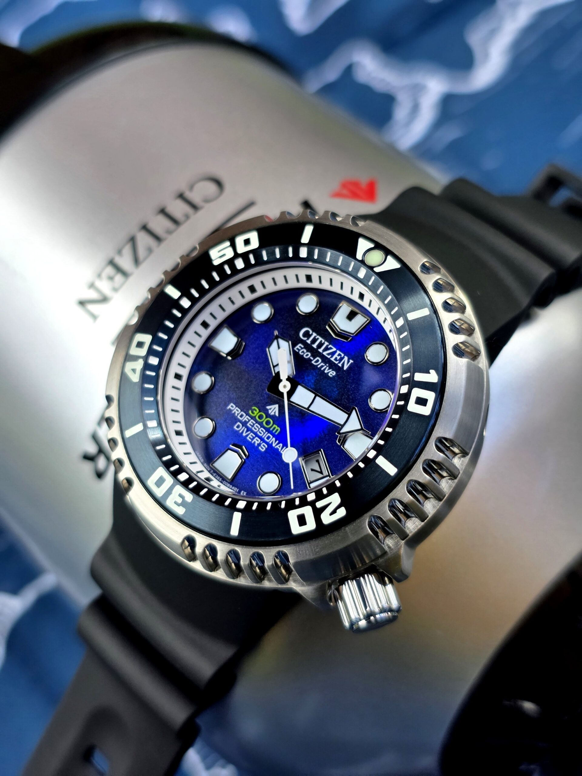 Este nuevo modelo de edición limitada forma parte de la colección Promaster para buceo, y ofrece una interpretación única del estilo y rendimiento de nivel profesional. Su resistente caja de acero inoxidable en tono plateado de 46 mm garantiza una resistencia al agua de hasta 300 metros. Cuenta con una corona atornillada ubicada a las 4 en punto y un bisel negro de fácil agarre que le da un aspecto audaz.
