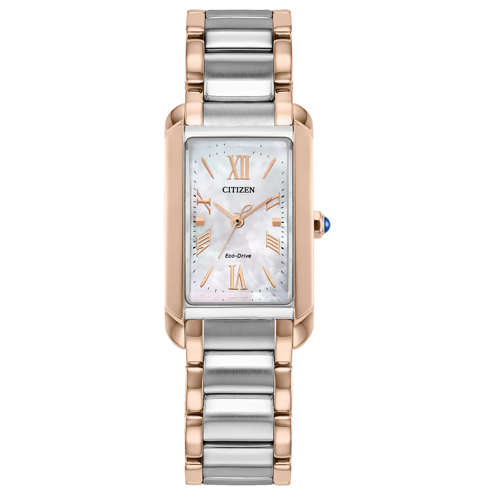 En su encantadora carátula de nácar, los índices romanos y de bastón se alternan con un sencillo juego de manecillas para lograr un estilo muy estético. Este elegante reloj se alimenta de forma sostenible con cualquier tipo de luz gracias a la tecnología Eco-Drive patentada por Citizen, que no requiere cambio de batería. Resistente al agua hasta 50 metros. Calibre B035.