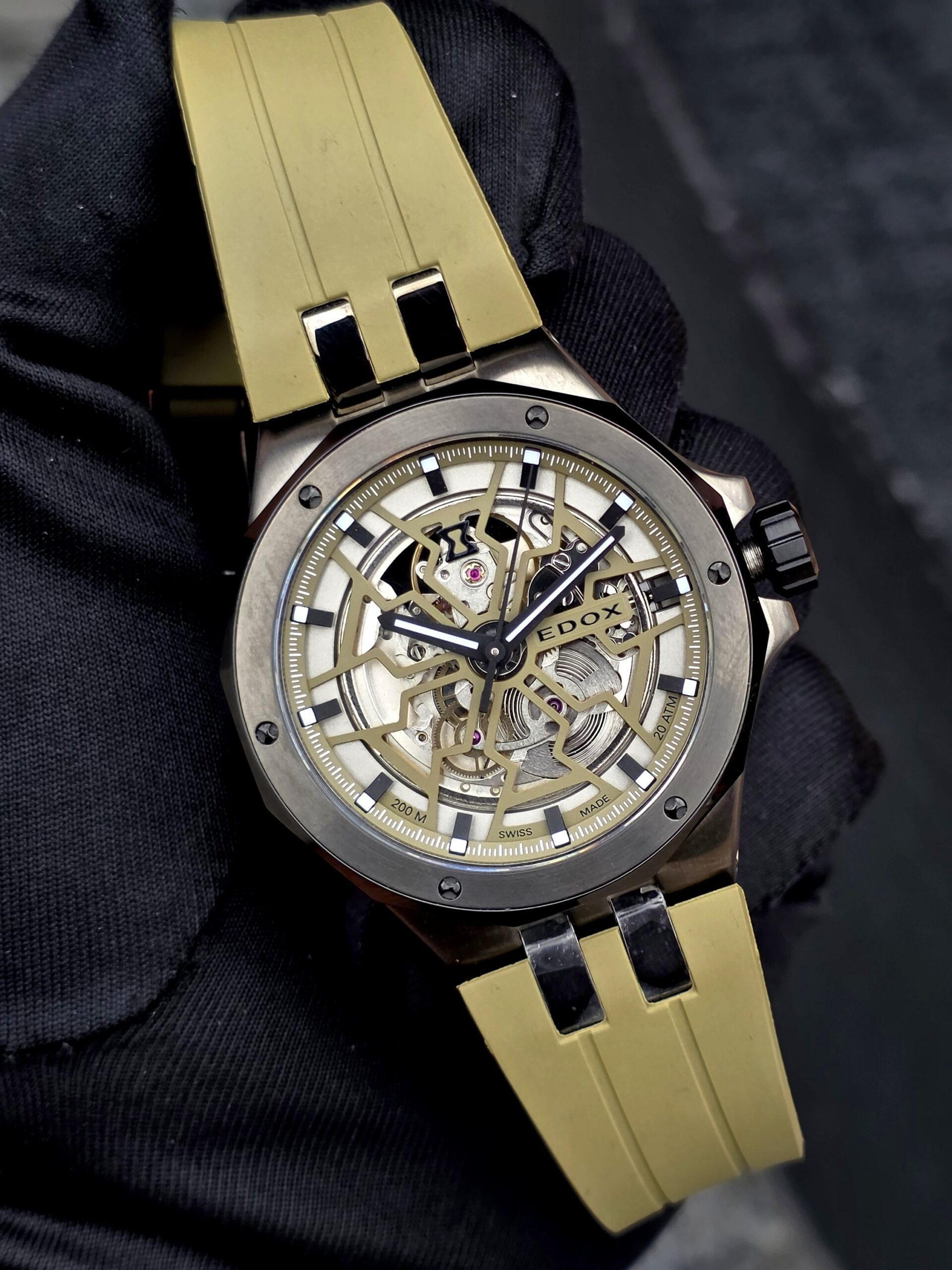 Características: Corona y/o pulsador Edox con doble junta tórica , Bisel cerámico giratorio , Corona y/o pulsadores atornillados , Superluminova X1 en manecillas y/o índices.