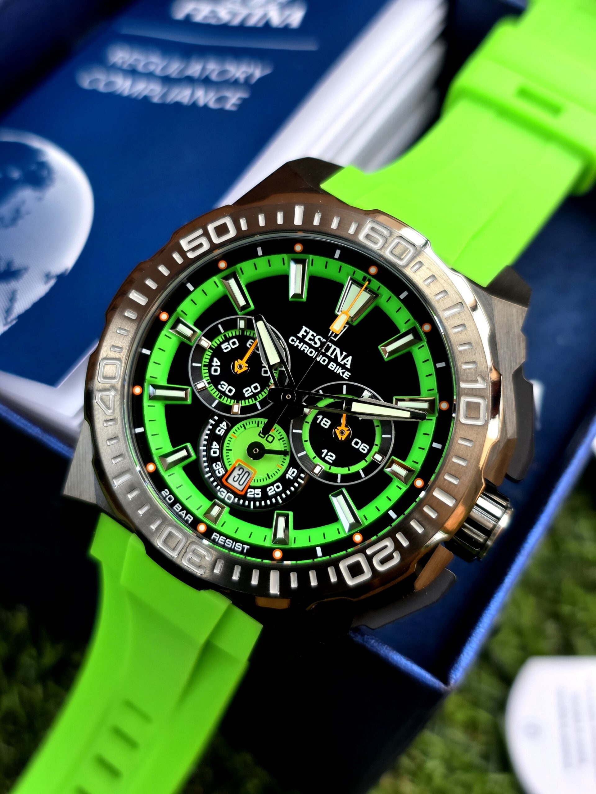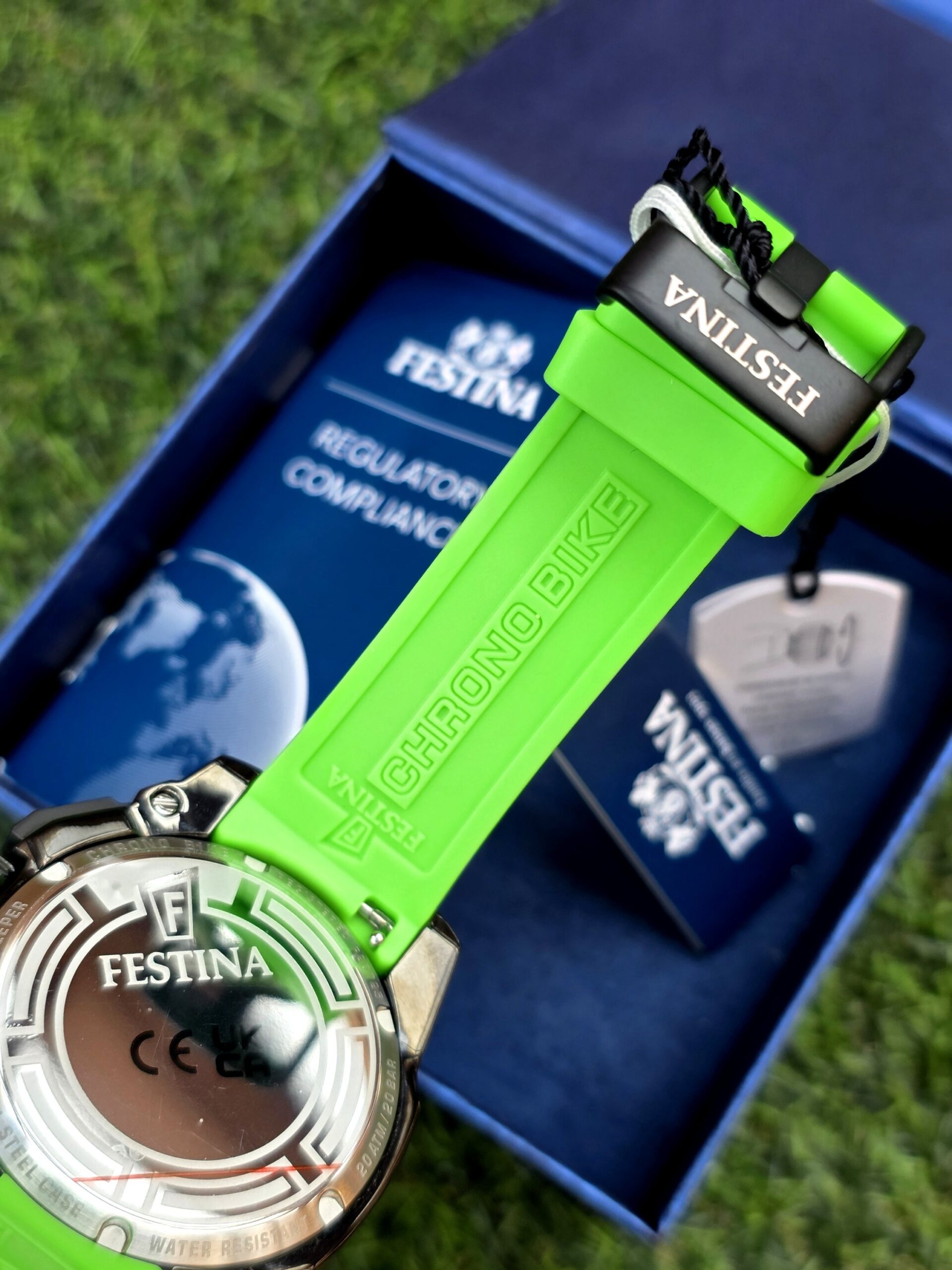 Reloj festina f20725/1 chrono bike para hombre, tamaño de la caja 46 mm de acero inoxidable, tamaño del pulso 220 mm de silicona, color turquesa, pulso de 220 mm, resistencia al agua hasta 20 metros