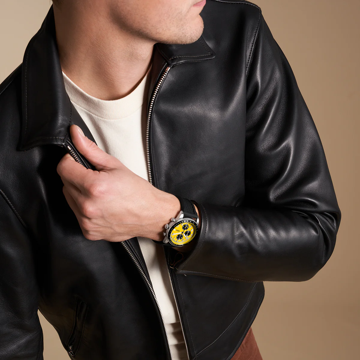 Nos propusimos crear un reloj que encarna tanto la función como la emoción de las carreras. Con un segundo movimiento de cronógrafo central japonés, bisel taquímetro de alto rendimiento y marcadores de hora lume, el Sport Tourer está hecho para cualquier camino que tome a continuación