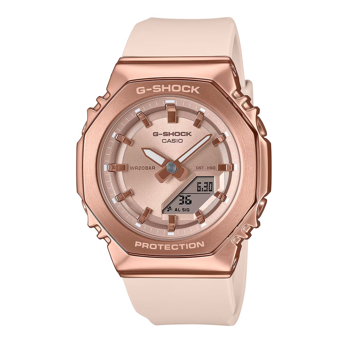 Formato de 12 y 24 horasFunción de movimiento de agujas (las agujas se apartan para proporcionar una visión sin obstrucciones del contenido digital de la pantalla).Funciones clásicas de reloj: Analógica: 2 manecillas (hora, minuto [las manecillas se mueven cada 20 segundos]) Digital: horas, minutos, segundos, p. m., mes, fecha, día