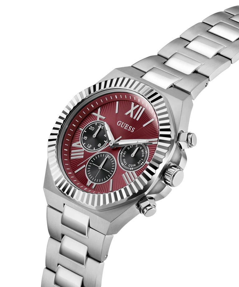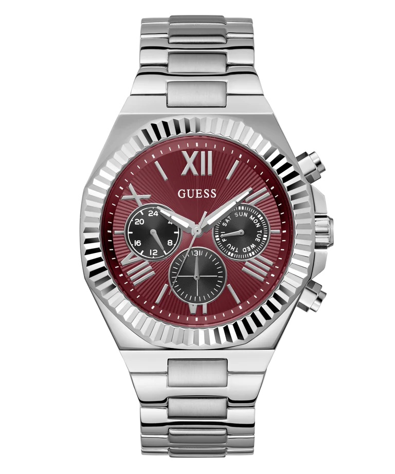 El Guess Equity (GW0703G7) no es un accesorio para pasar desapercibido, es una auténtica declaración de intenciones en tu muñeca 💥. Imagina la fuerza de una imponente caja de 44 mm de acero inoxidable reciclado que grita sostenibilidad, combinada con un hipnotizante dial color rojo sangre en acabado sunray que atrapa todas las miradas bajo la luz. Su bisel estriado le da un aire clásico y rudo a la vez, mientras que sus esferas multifunción te mantienen al tanto del día y la fecha con una precisión implacable. Es la mezcla perfecta entre la elegancia atrevida que necesitas para una cena importante y el carácter deportivo y robusto para devorarte el día a día.