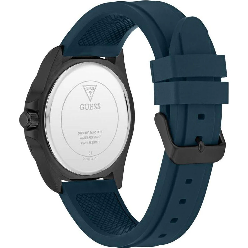 Este reloj marca Guess tiene una caja de Inox con un diámetro de 42 mm y cuenta con una correa de Goma. Dentro de la caja se encuentra un mecanismo de Seiko de alta calidad el cual esta protegido por un cristal Mineral.