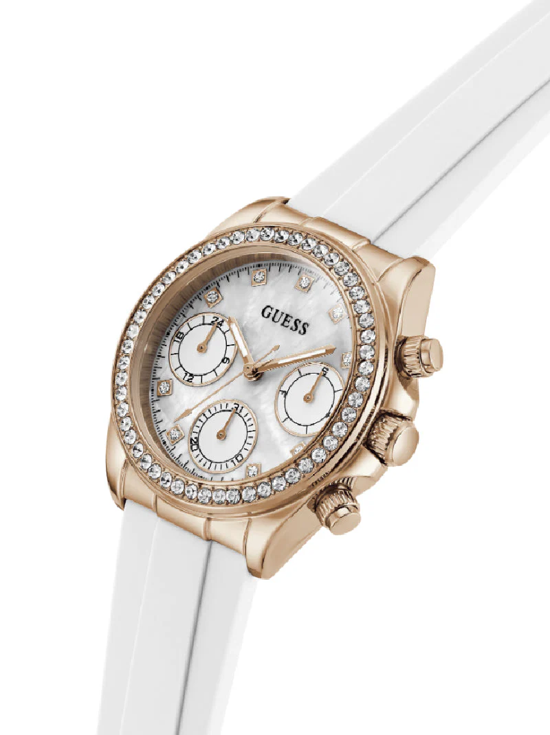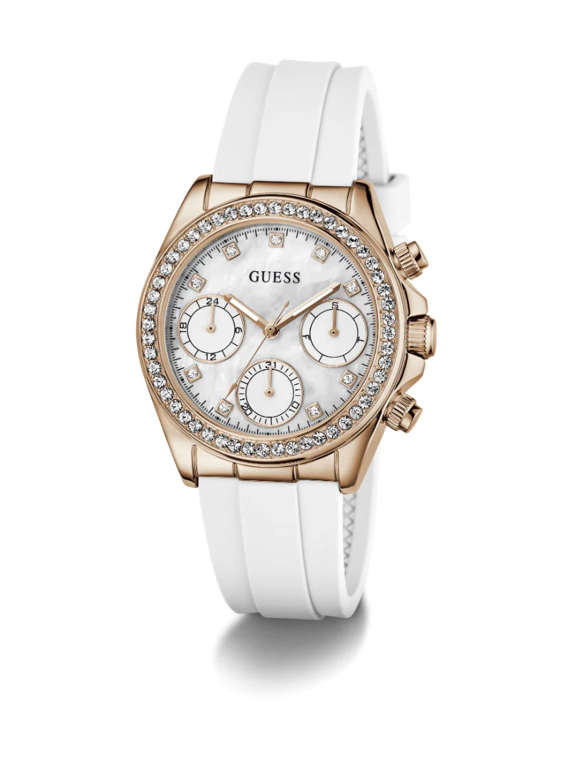 El reloj de pulsera Guess Victoria para mujer presenta un diseño elegante y moderno, perfecto para un estilo de vida activo. Su caja de alta calidad y su cómoda correa, junto con una esfera de 36 mm, realzan tu estilo. Con movimiento analógico, es ideal para el uso diario, aportando un toque de sofisticación y encanto natural a tu look.