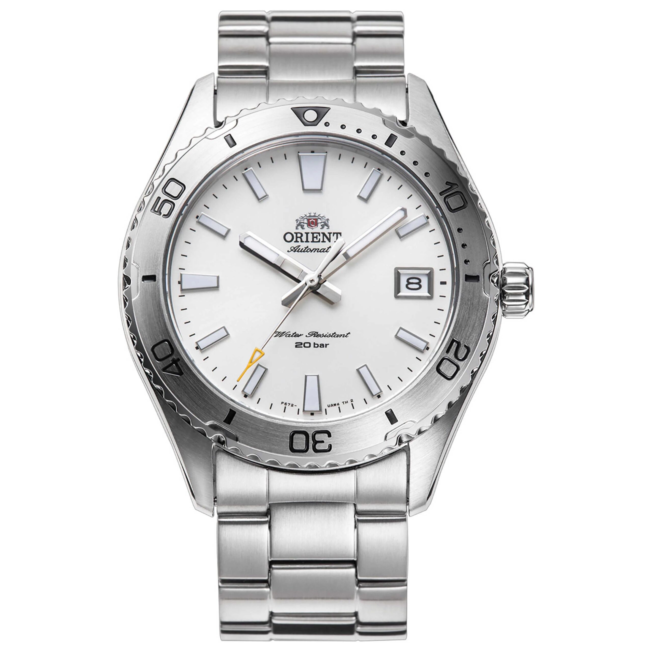 Reloj de pulsera Orient Mako RA-AC0Q03S para Hombre con movimento de Mecánico, con caja de Acero inoxidable con diàmetro de 39 mm, con cuadrante Blanco y correa en Acero inoxidable, color Plateado.