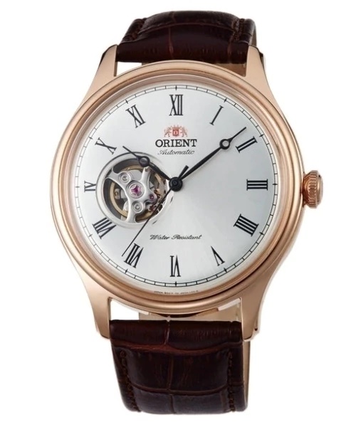 El Orient TAG00001S Envoy destaca por su diseño clásico y refinado, con detalles elegantes que evocan la alta relojería tradicional. Su cristal abombado, su caja en acero inoxidable con acabado oro rosado y su esfera plateada curvada crean una pieza sofisticada que combina estilo y técnica a la perfección.
