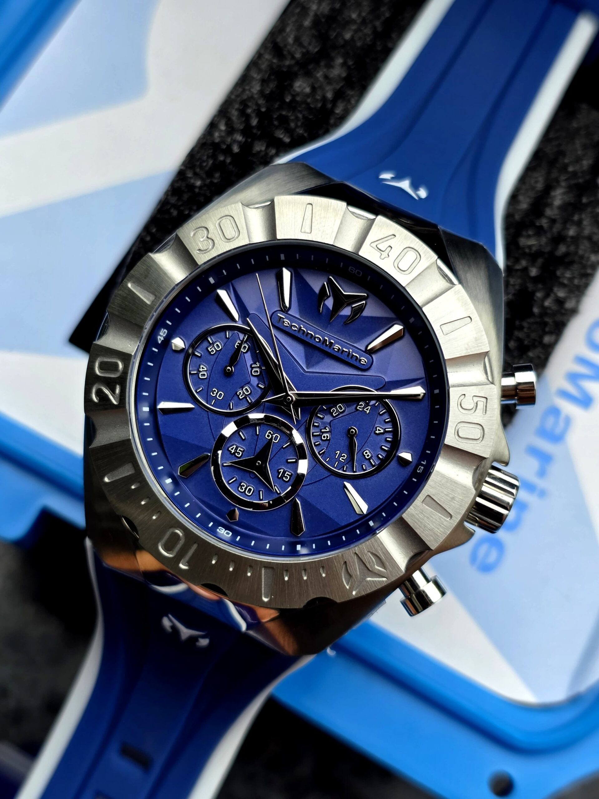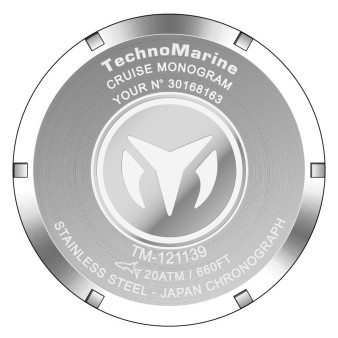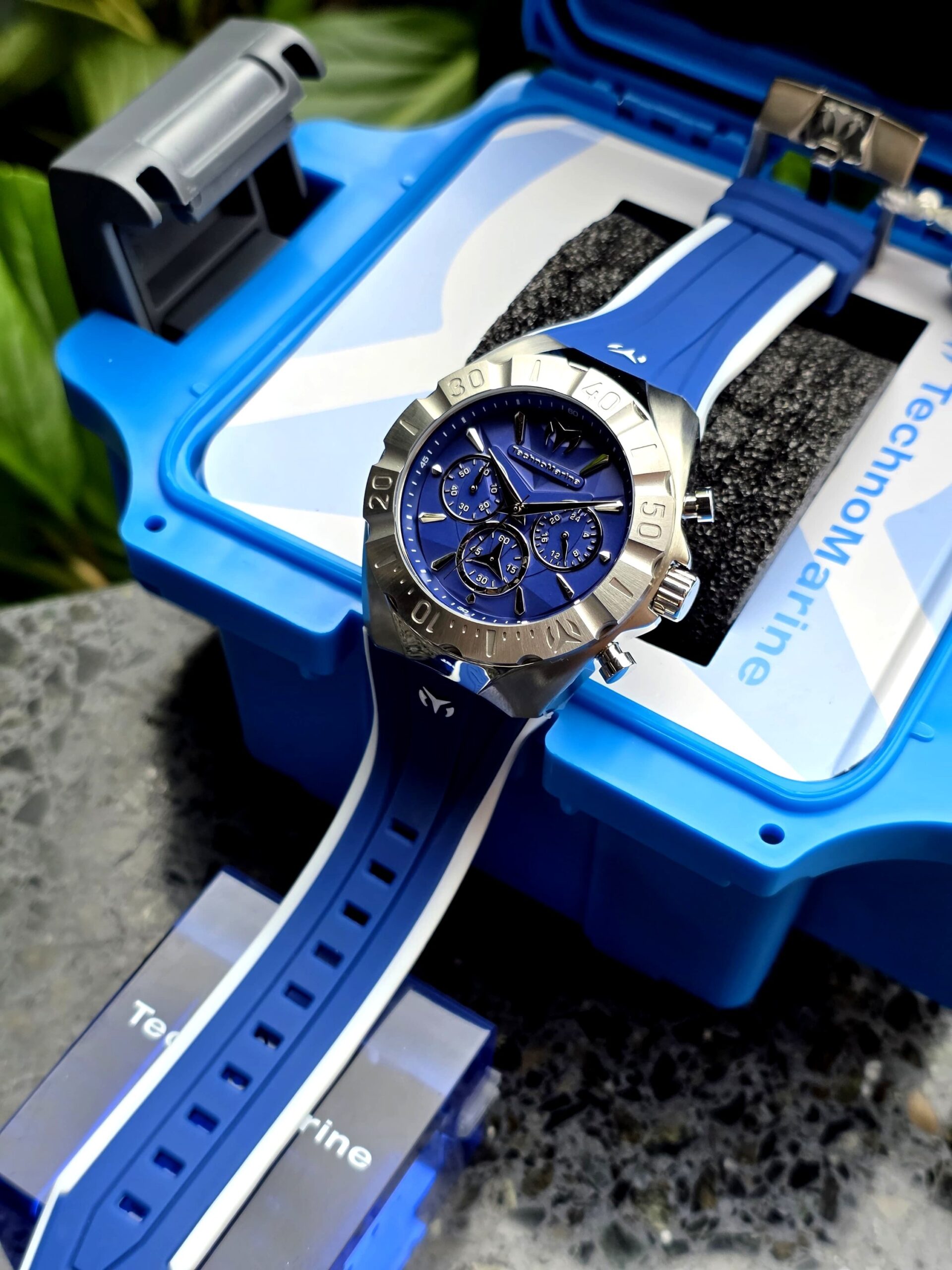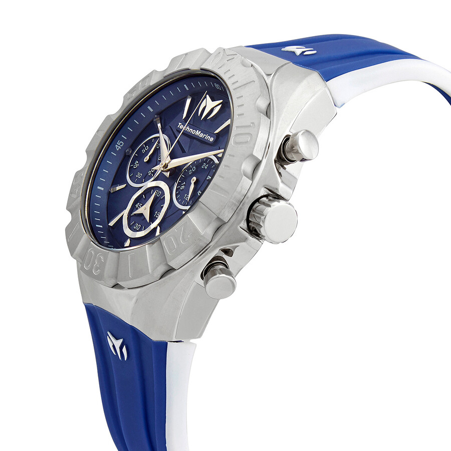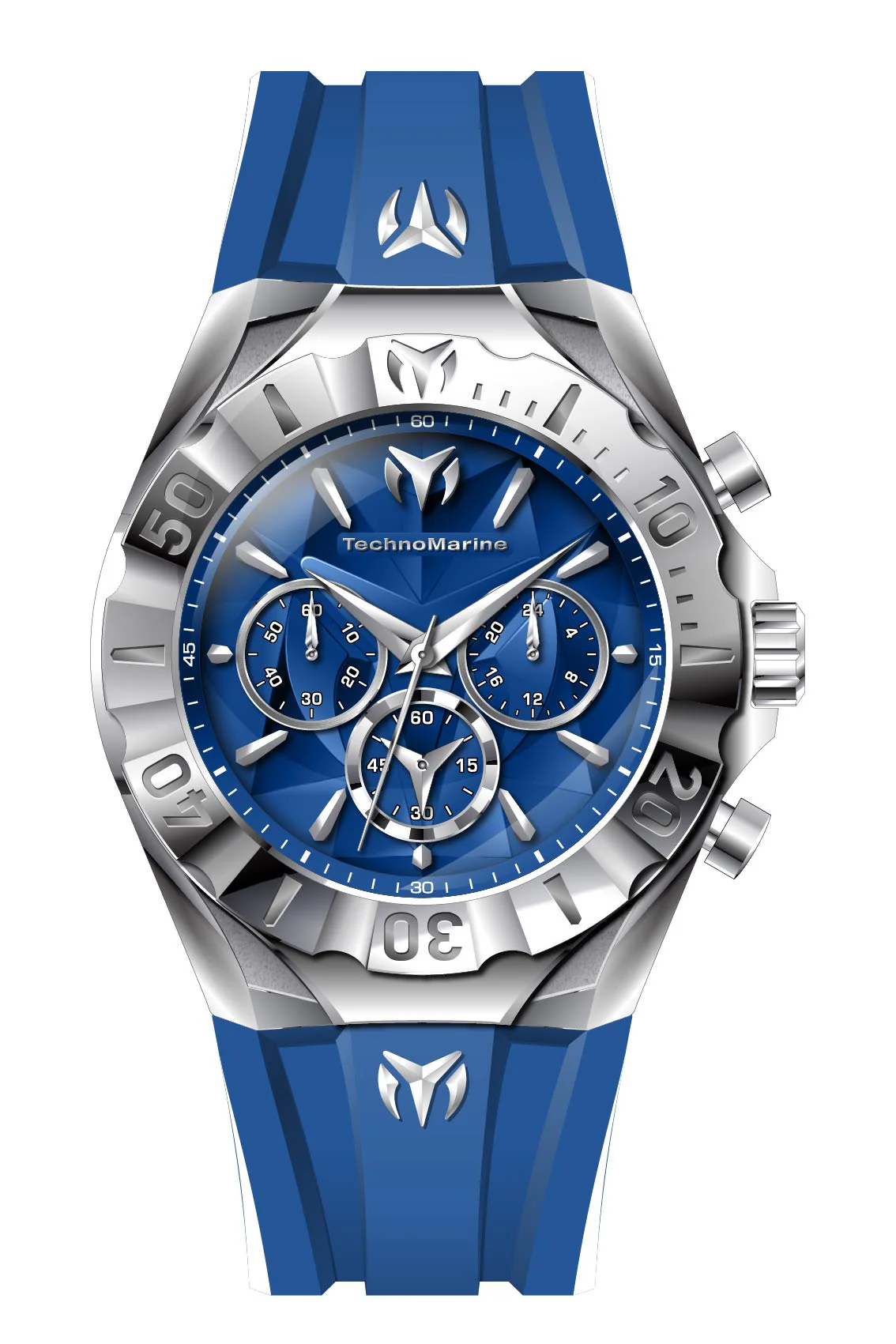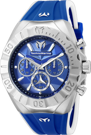 Reloj technomarine número de serie 121139 cruise para hombres, tamaño de la caja 45 mm de acero inoxidable, tamaño del pulso 210 mm de silicona, color blanco, azul, pulso de 210 mm, resistencia al agua hasta 100 metros