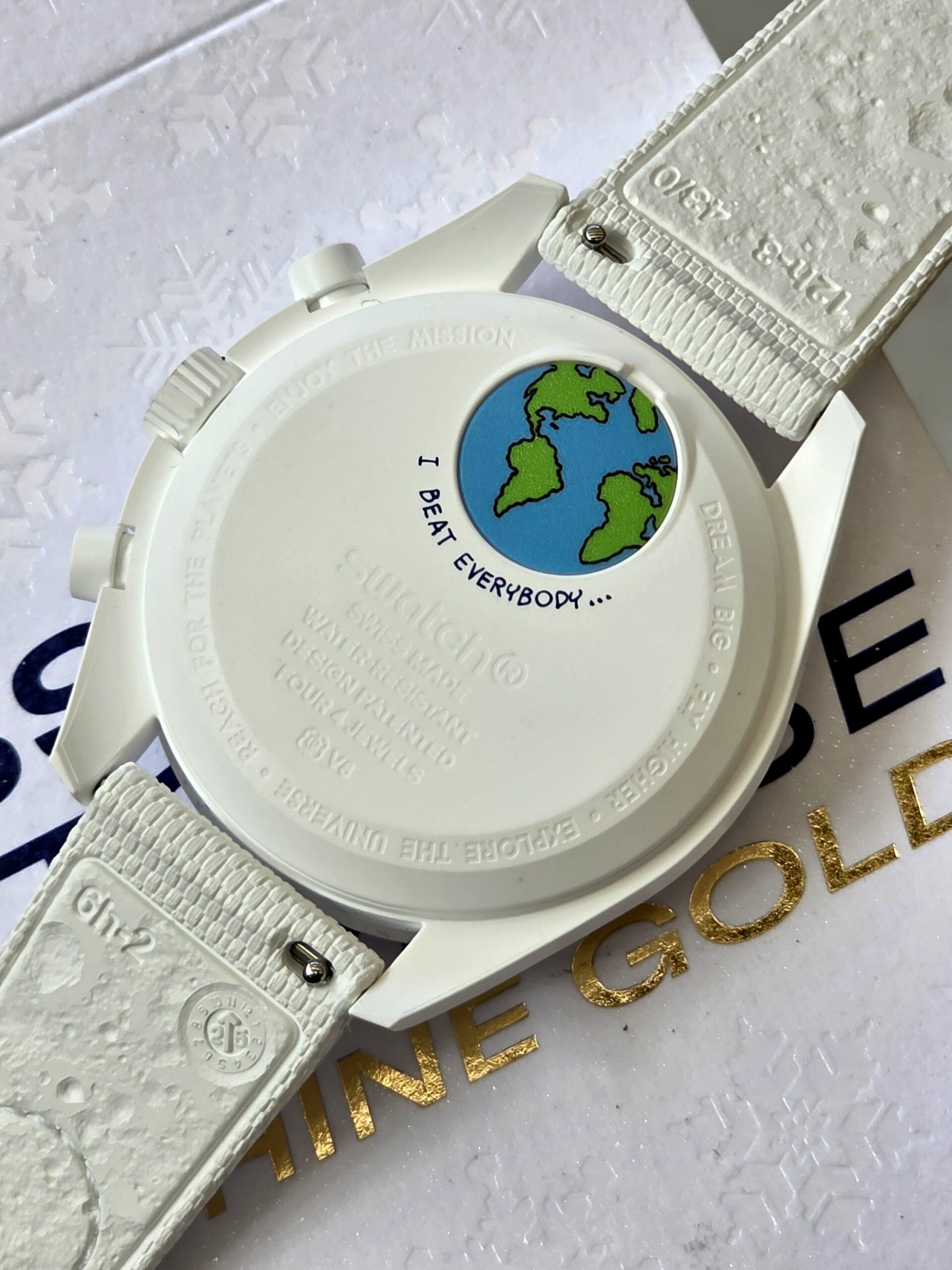 Material de la caja: caja, corona y pulsadores de Bioceramic de color blanco.