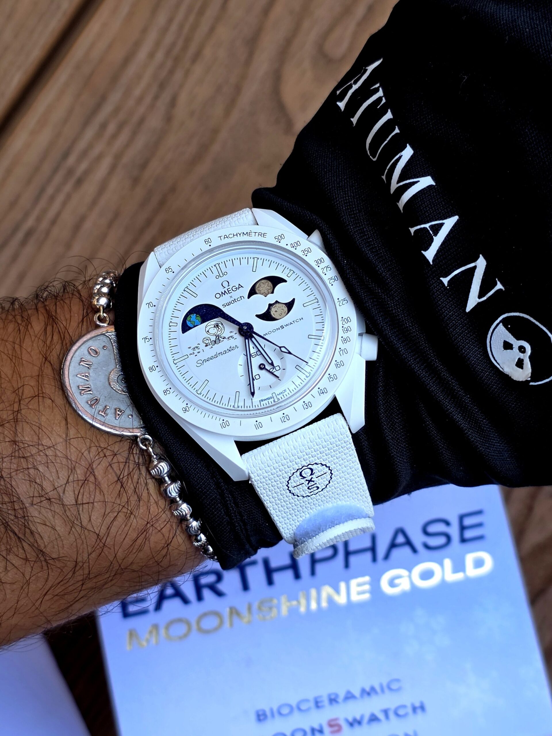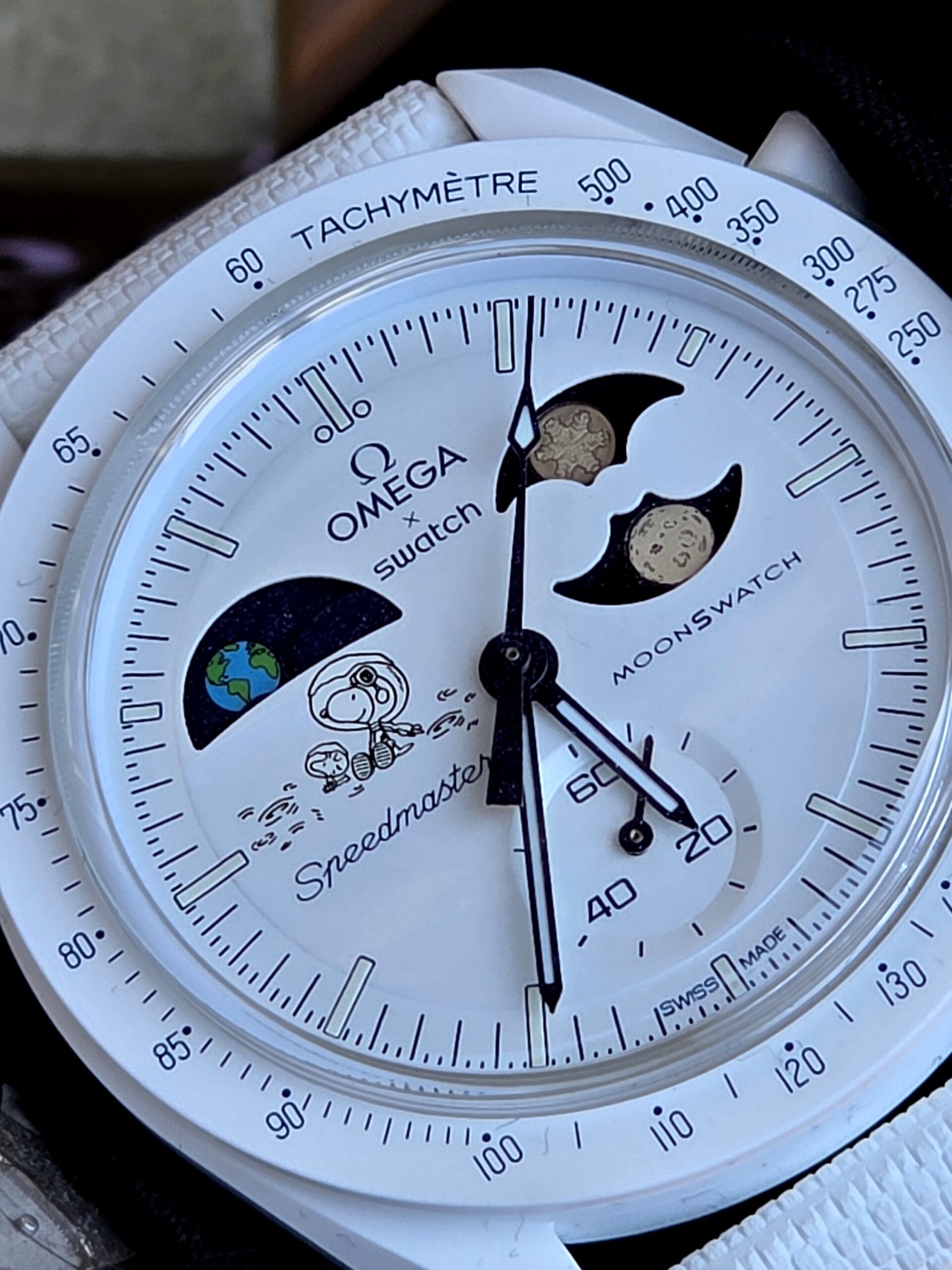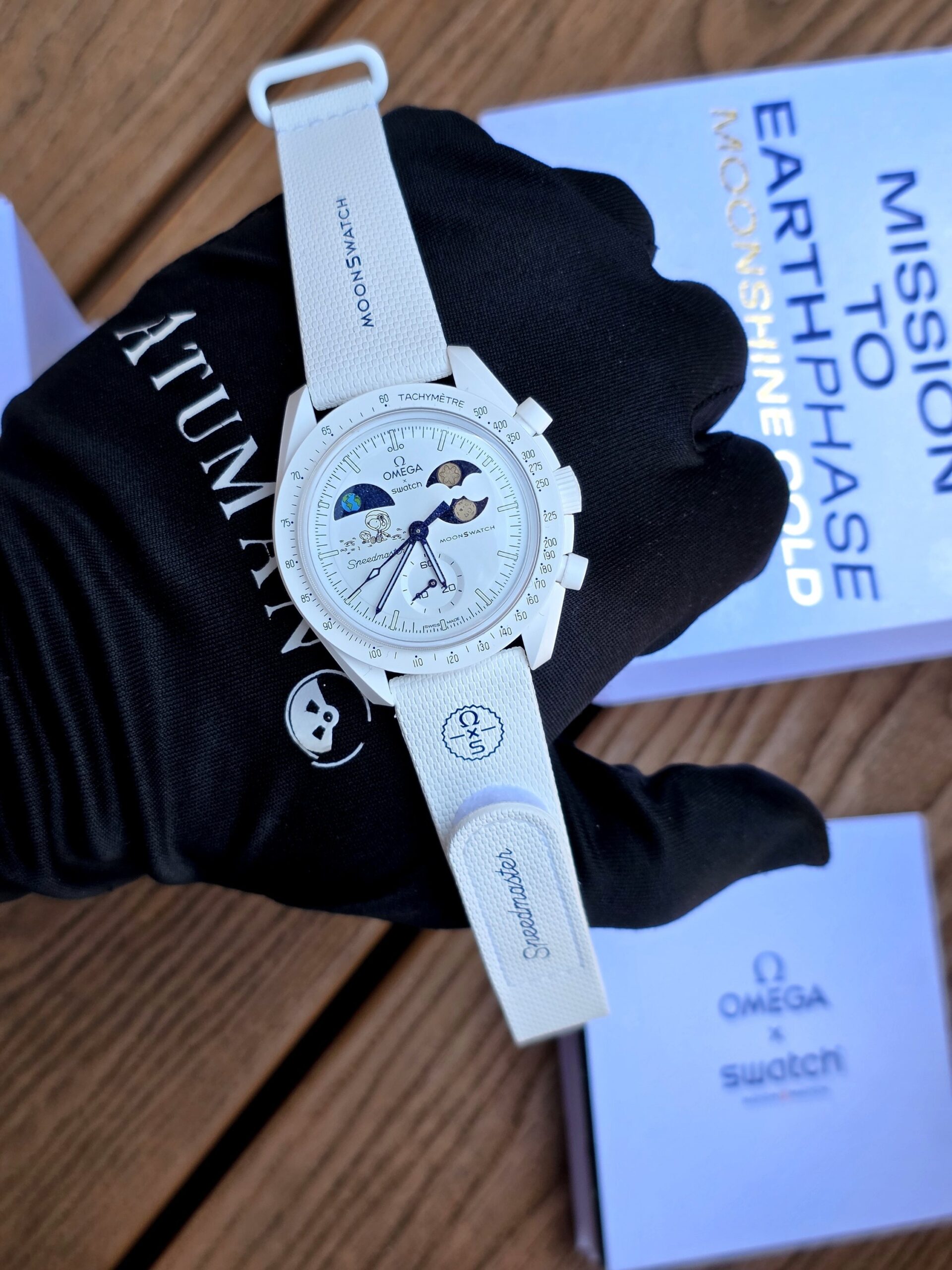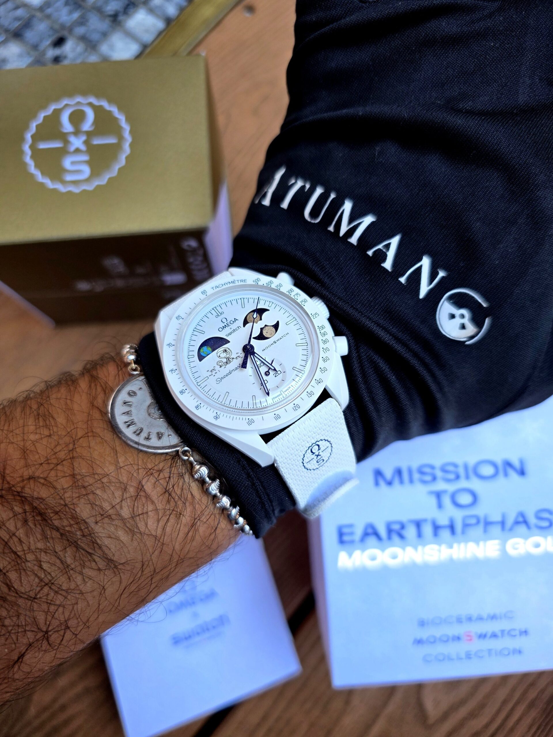 Movimiento de cuarzo: cronógrafo (solo segundos) con un indicador de fases lunares y un indicador de fases terrestres