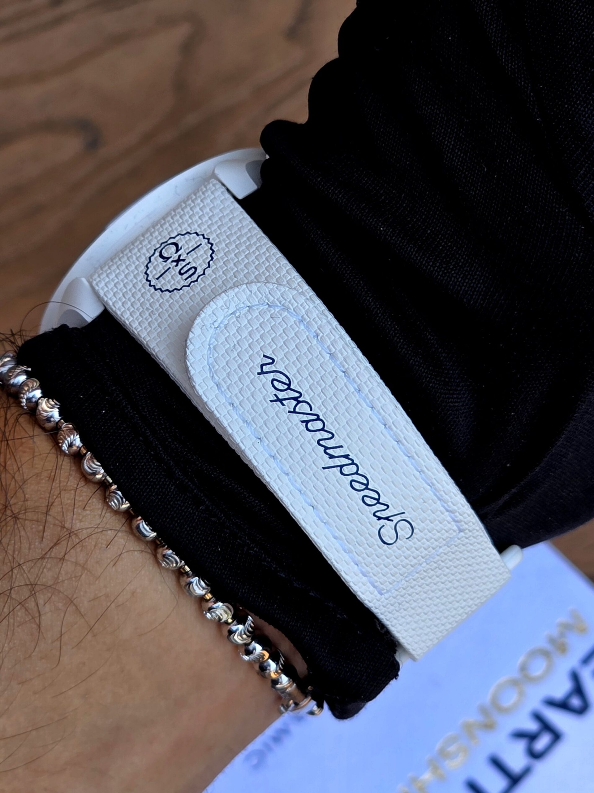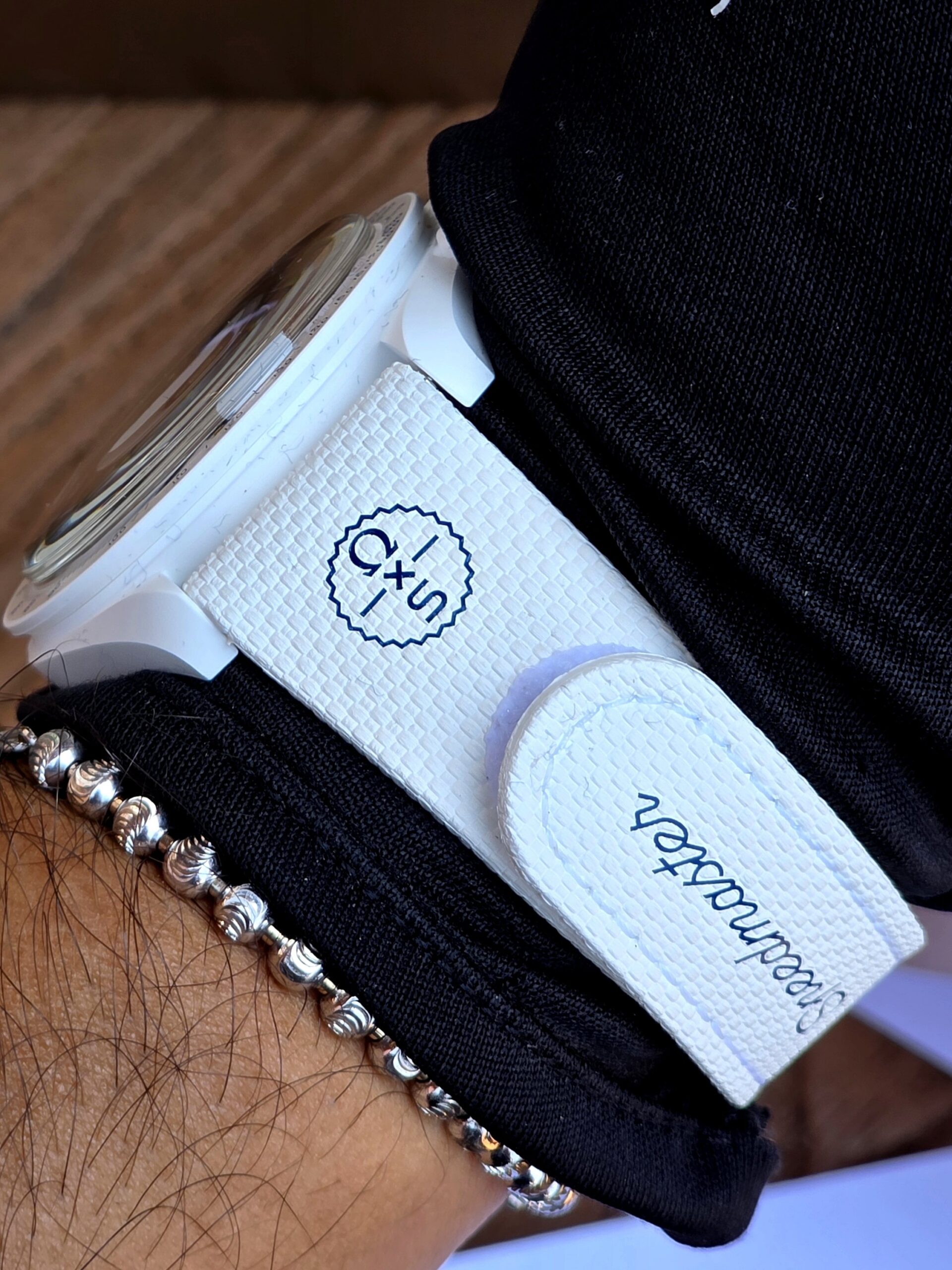 Correa: de caucho blanco con cierre de VELCRO®, trabilla de Bioceramic también de color blanco.