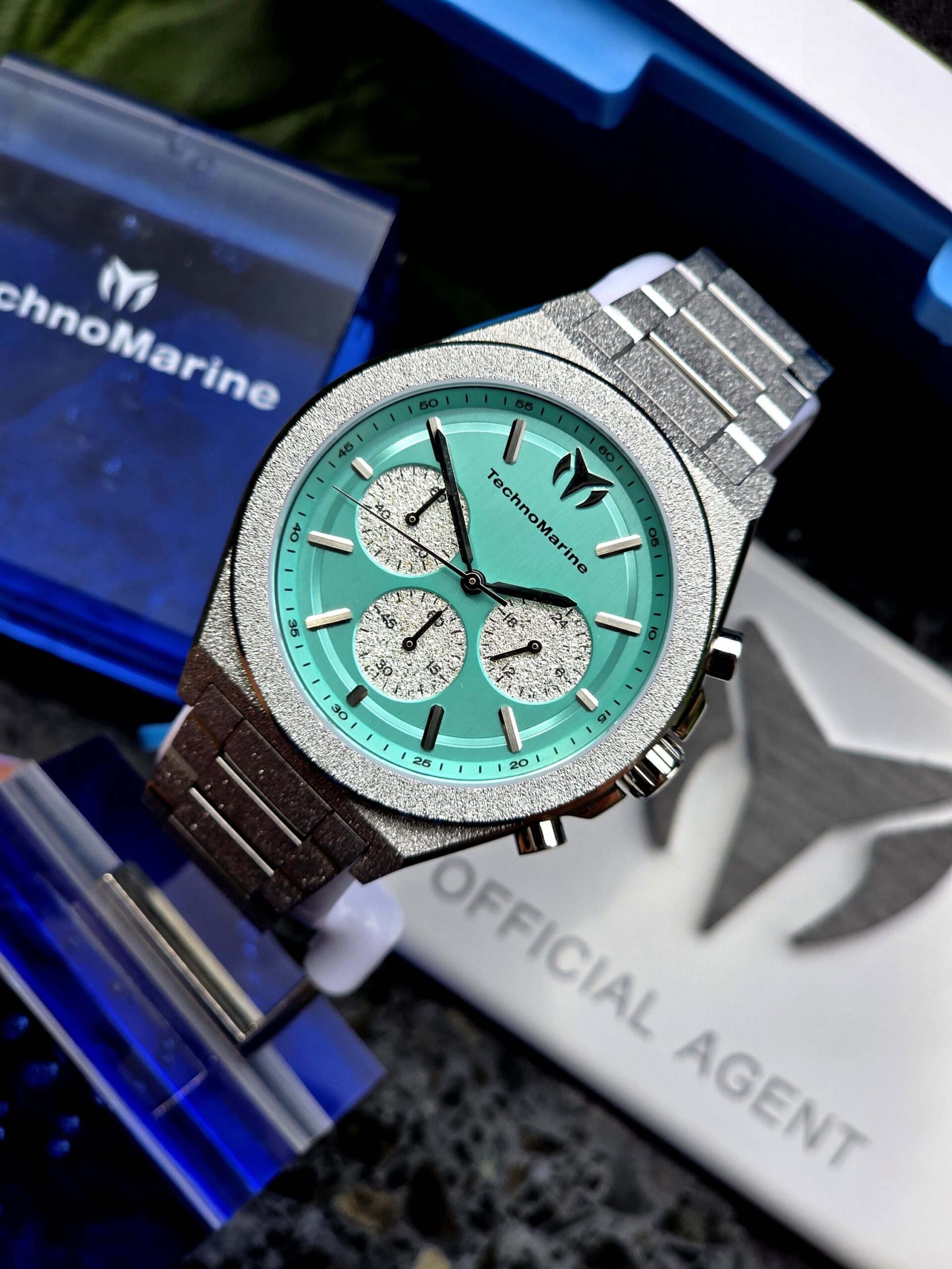 TechnoMarine Ocean Emperor TM-318152 es un reloj deportivo de lujo para hombre, caracterizado por una robusta caja de acero inoxidable de 43 mm, movimiento de cuarzo preciso y una estética en tono plata y turquesa. Diseñado para un estilo de vida activo, combina funcionalidad técnica con un diseño sofisticado