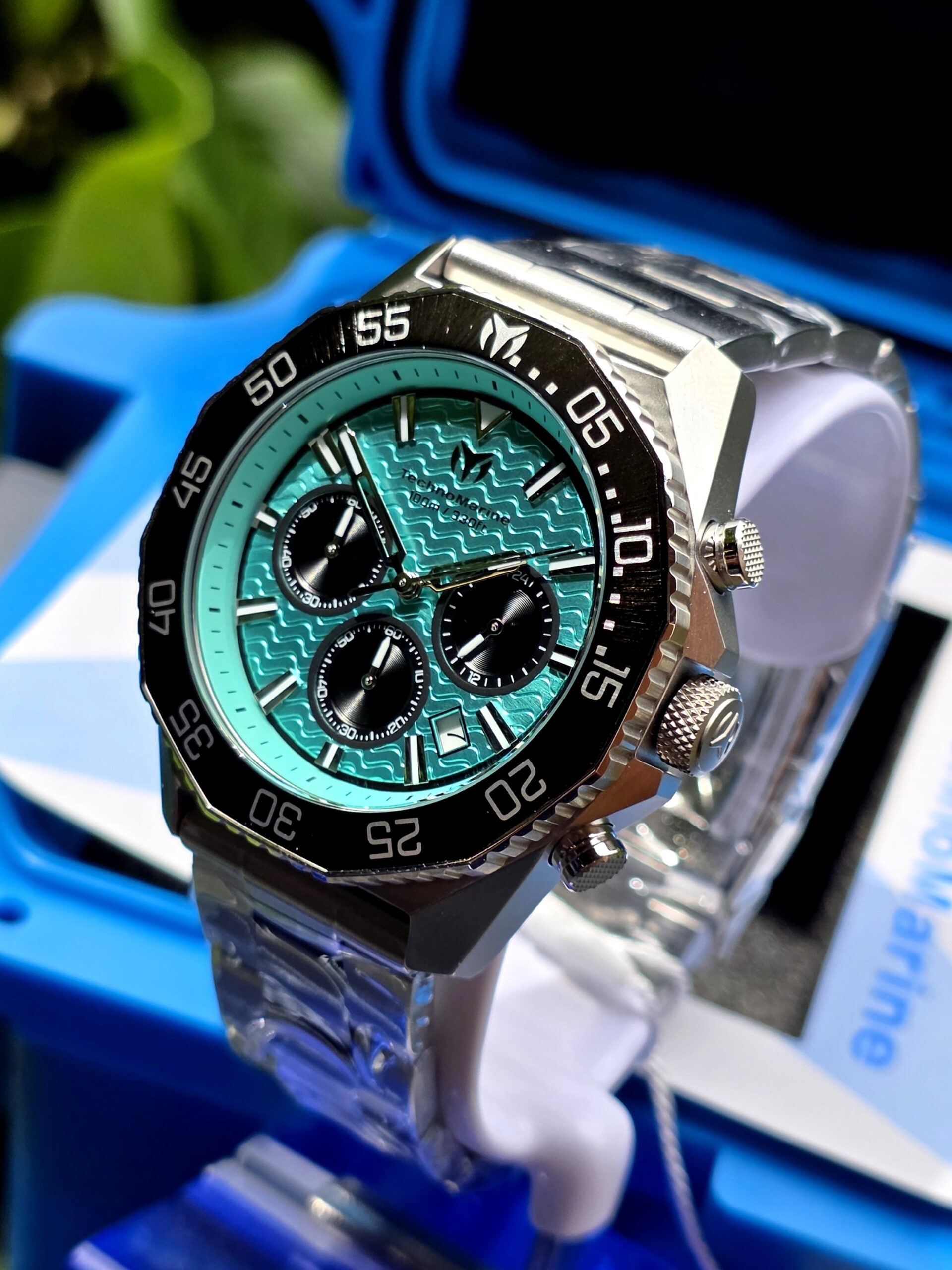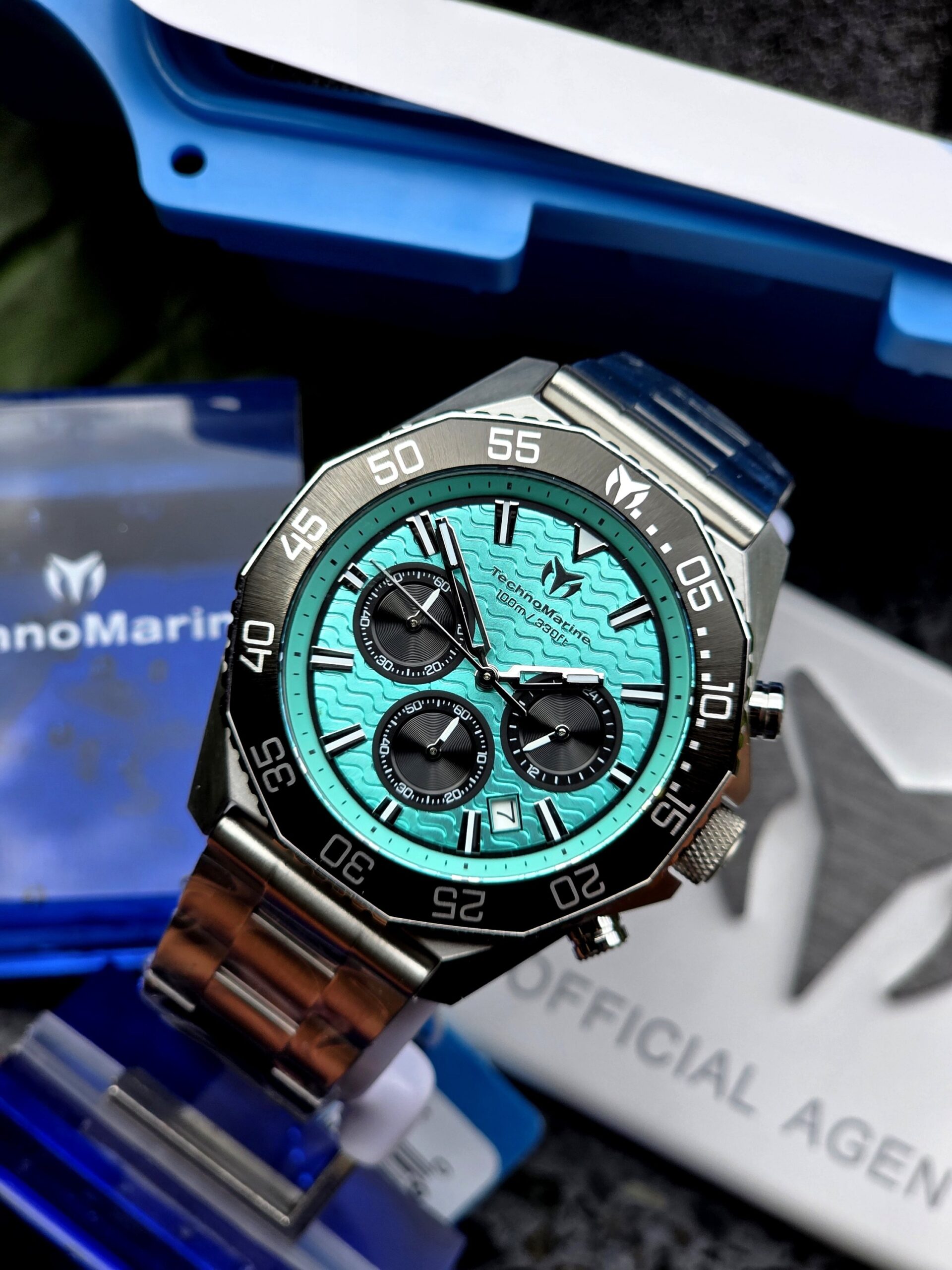 TechnoMarine Mare Vivo TM-225081 es un reloj cronógrafo para hombre de 44 mm con caja de acero inoxidable, esfera azul texturizada y movimiento japonés (VD53C). Es un modelo de la marca Technomarine (distribuido a menudo por Invicta) que cuenta con una resistencia al agua de 100 metros (10 ATM) y brazalete de acero.