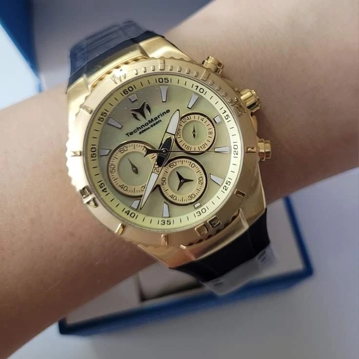 Esfera: Color madre perla (Mother of Pearl) con manecillas doradas e índices luminosos.